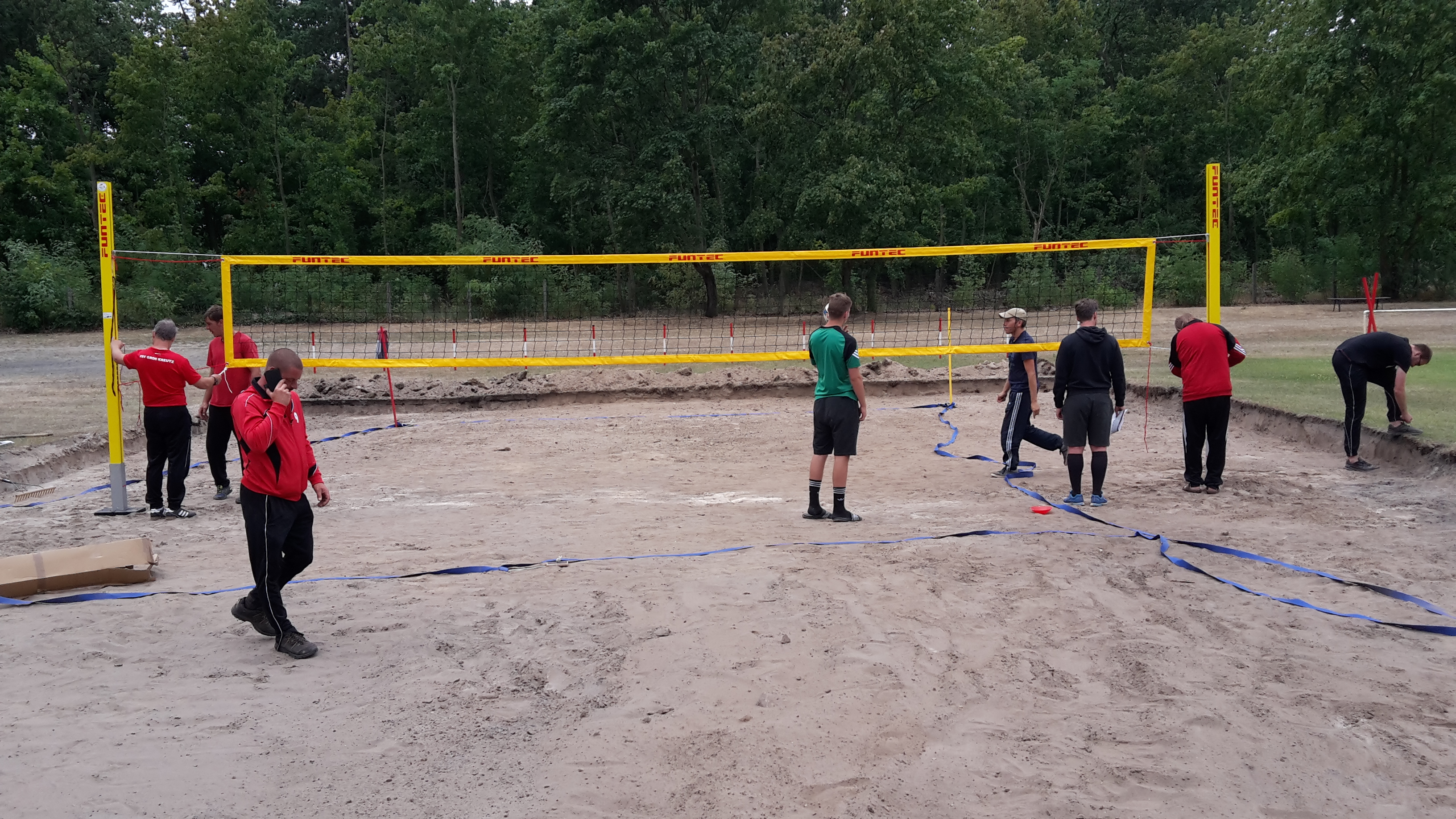 Daher startete der Verein das Projekt „Beachvolleyball-Platz“. In Eigenregie wurden die notwendigen Mittel eingeworben und kräftig angepackt beim Aushub, Abtransport, Fließeinlage, Pfosten setzen und Sand schippen.