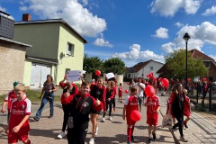 Zahlreich vertreten, insbesondere mit sehr vielen Kindern vom Fußball und Streetdance, ging es, bewaffnet mit Luftballons, Seifenblasen und Trillerpfeifen den geplanten Weg durchs Dorf. Neben den vielen Kids ließen es sich aber auch die Fußballer, die Frauen vom Frauenfitness, die Volleyballer, Aktive aus dem Gesundheitssport, Eltern und Unterstützer nicht nehmen, mit dem FSV zu laufen.