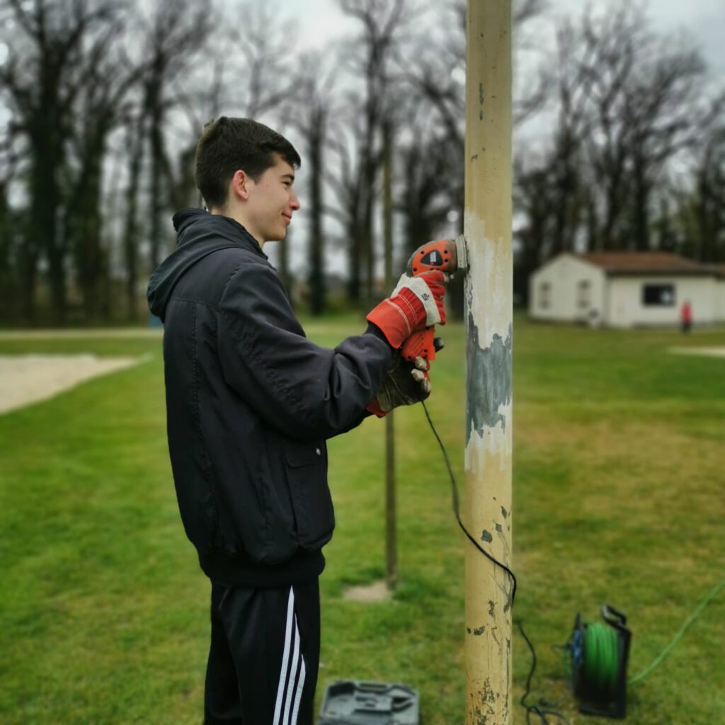 So konnten die Fundamente für den Ballfangzaun ausgehoben und die Tore des Hauptplatzes abgeschliffen werden. Auch ein Bolzplatztor für die Kids wurde eingesetzt und Wandschäden im Sporthaus beseitigt. Also auch in kleinen Gruppen kann man seinen Teil am Vereinsleben beisteuern.