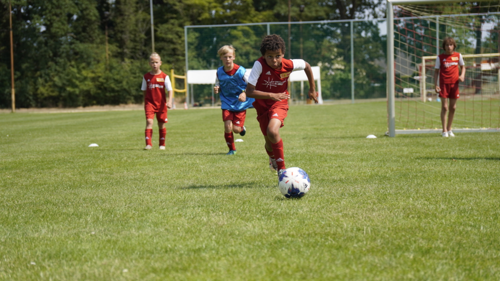 Ritter Keule fand den Weg an den Kleinbahndamm und blieb nicht nur Zuschauer. Die Kids durften ihn beim 9 Meterschießen überwinden.